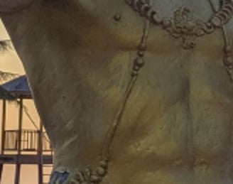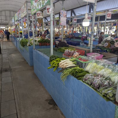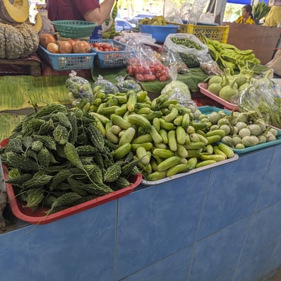 Am Montag wollten wir die 5km bis zum Inneren von Taphong laufen, um den dortigen Fruchtmarkt zu erleben. Besonders die ersten 1-2 km konnten wir am Strand laufen und auch ein paar Tierchen erleben. Unten seht ihr etwa die winzigen Buh Lomm (Windkrabben), welche blitzschnell in ihren kleinen Höhlen verschwunden sind, wenn sie die Erschütterungen unserer Schritte spürten. Später, an der Straße entlang, hielt ein Wagen neben uns und lud uns auf die Fahrt nach Taphong ein. An einem Wochentag tagsüber waren hauptsächlich die Stände mit den Früchten geöffnet. Der nun eher beschauliche Bauernmarkt bot dabei aber gut reife und frischeste Früchte, wobei hier besondere Schnäppchen möglich sind, da auch einzelne Obststücke von den Bäumen des Vorgartens für symbolische Werte verkauft werden (etwa ganze Papayas für 10 Baht). Wir haben uns gerade an Früchten übergessen und auch einige mitgenommen. Besonders die Jackfrucht und der Klebereis mit Mango blieben dabei im Gedächtnis. Für den Rückweg hielt ein Pick Up Fahrer neben uns und wir machten einen für ihn passenden Preis für die 10-minütige Fahrt aus (300 Baht). Ein Tipp aus unserer Erfahrung: Wenn euch ein Fahrer besonders zusagt, bzw. Transporte schwierig sind, dann könnt ihr auch Nummern austauschen und diese Fahrer für andere Tage ordern. Bei einem üblichen Tagesgehalt von 800-1000 Baht (das monatliche Durchschnittsgehalt lag 2024 bei 474$ bzw. 24$ pro Tag) sind etwa zwei Fahrten á 300 Baht schon sehr ordentlich. Wenn ihr als Farang 2000-3000 Baht je nach Fahrzeug anbietet, kann ein Fahrer auch für den ganzen Tag gemietet werden. Besonders zum Sightseeing fernab der ausgetretenen Pfade bietet diese Transportart eine gute Alternative zur eigenen Fahrzeugmiete. Allerdings würde ich diesen entweder per Reiseagentur oder nach vorheriger Erfahrung der Fahrweise buchen.